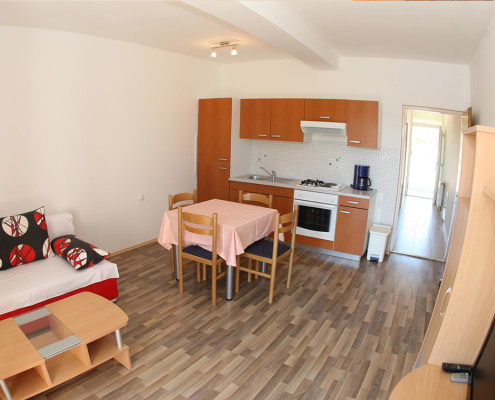Apartman 2 smješten je na prvom katu objekta, sa zasebnim ulazom. Sastoji se od jedne spavaće sobe, kuhinje s dnevnim boravkom, kupaonice s wc-om, te balkonom okrenutim prema moru.